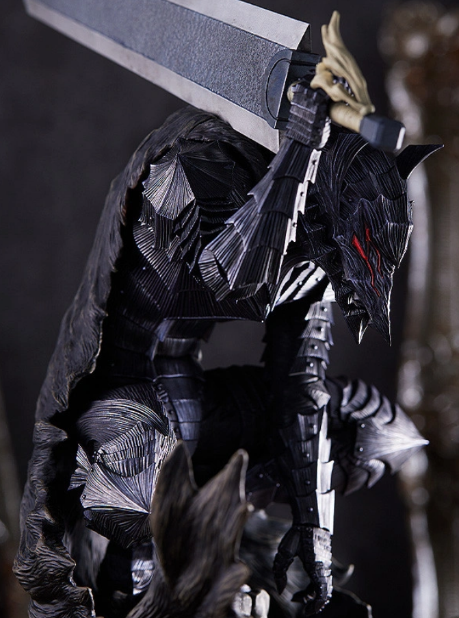 From the popular manga "Berserk" comes a POP UP PARADE L Size figure of Guts wearing the Berserker Armor. The figure stands at approximately 280mm in height (including the vignette base). Guts' appearance from the cover illustration of the manga's 28th volume has been impressively captured in figure form.
