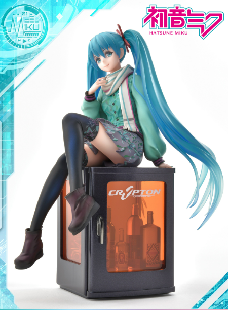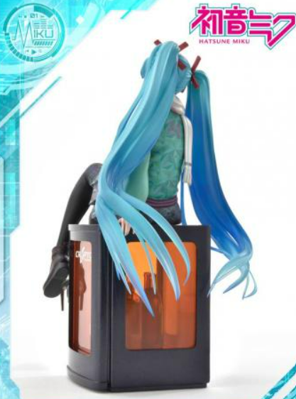 Hatsune Miku is cute and generous, with her iconic double ponytail flowing slowly over her shoulder. The gradual transition of her hair color starts with blue and ends with translucent turquoise, showing her elegant and brilliant nature.